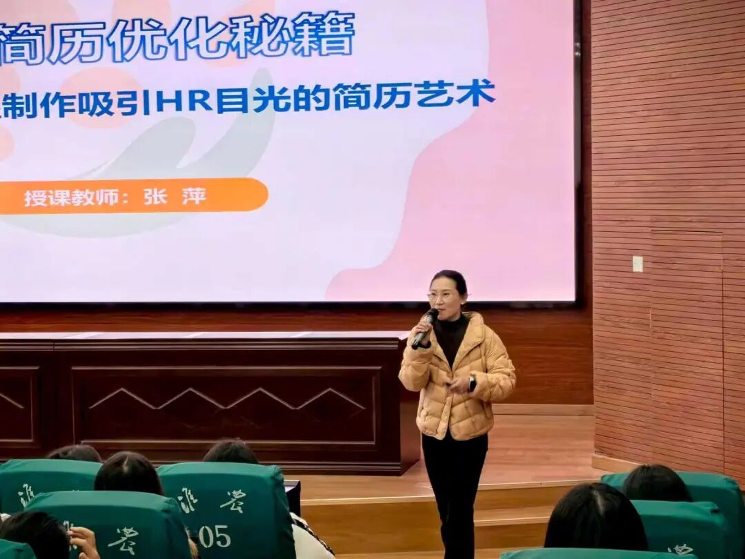 淮安工学院双创学院(工程训练中心)教学科研科科长张萍,省女大学生创业就业实践基地负责人、市女企业家协会副会长兼秘书长、淮安市美之尚服饰有限公司董事长朱峰茹分别以《简历优化秘籍》《用心成就你我》为主题,帮助女大学生们规避简历常见误区、分享创业故事与实战经验。