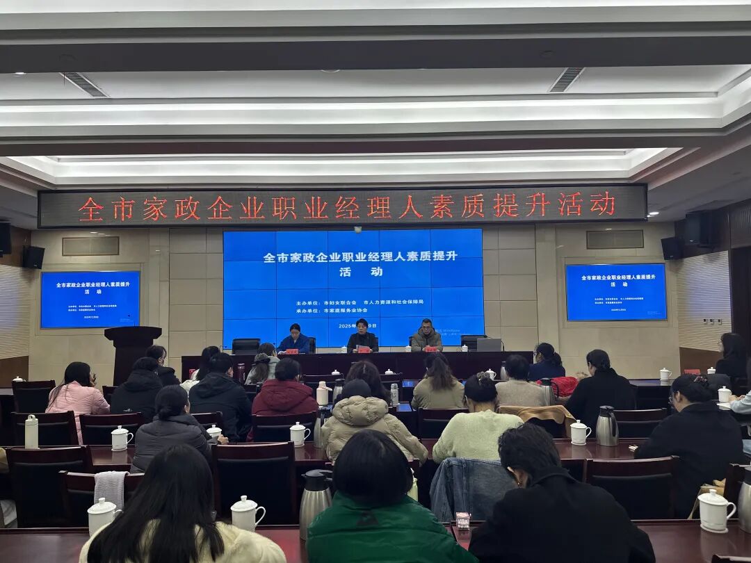 本次活动由市妇联、市人社局联合举办,市家庭服务业协会承办。市县(区)人社部门及其相关机构以及市家庭服务业协会、市县(区)各家政企业代表等近50人参加。