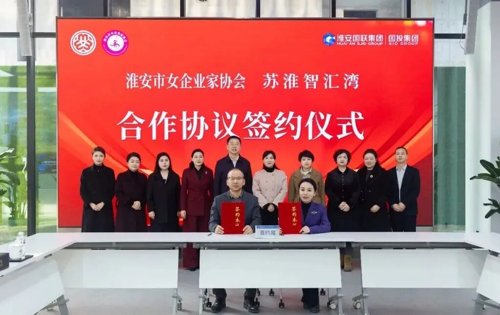 1月16日下午,市妇联党组书记、主席刘然,党组成员、副主席季淑红,市女企协会长朱华林及部分副会长到访苏淮智汇湾。淮安国联集团党委书记、董事长王伟,党委委员、副总经理孙国庭及国联产投公司经营管理团队齐聚一堂,共同见证双方框架合作协议签约暨女企业家协会共享基地揭牌仪式,开启政企协同、赋能女性创业的崭新篇章。