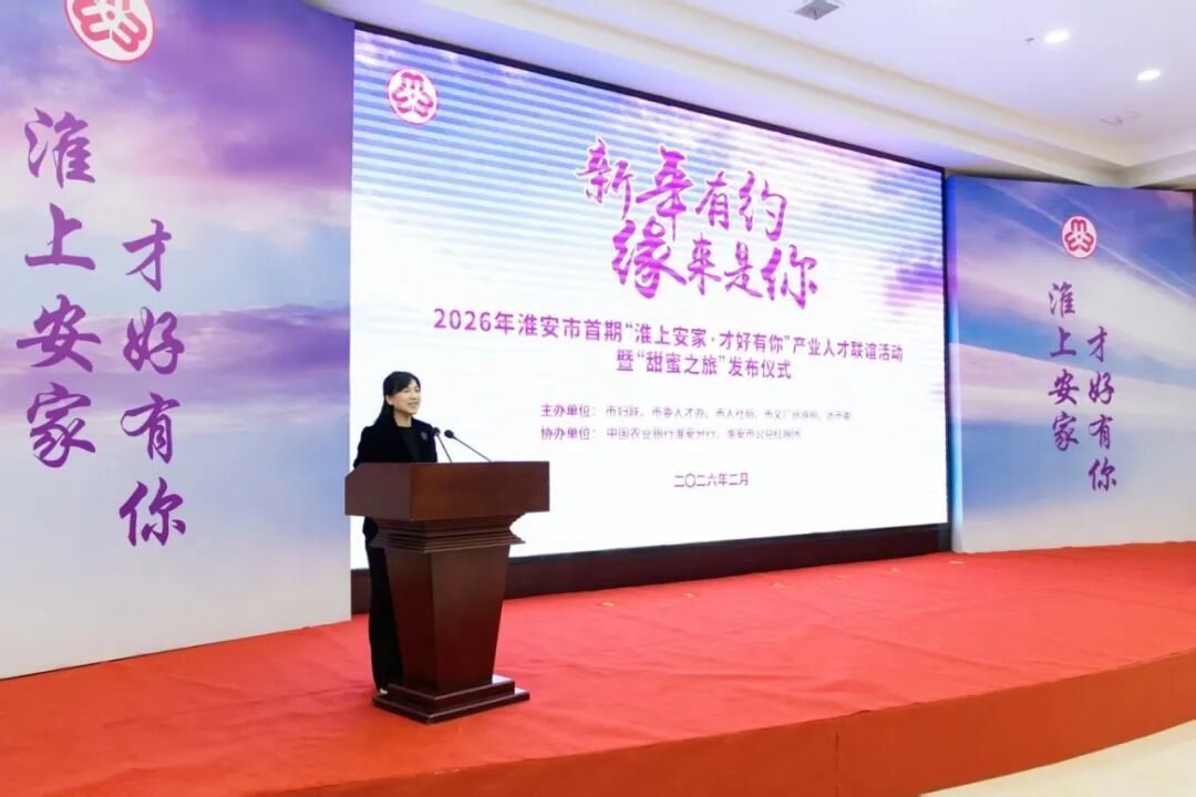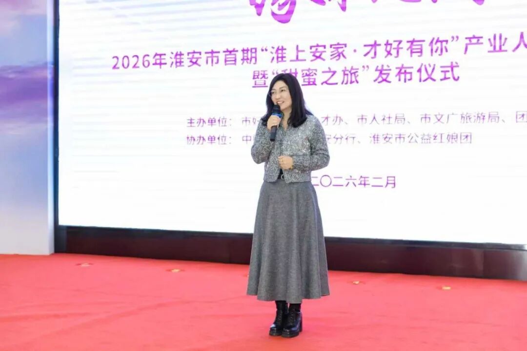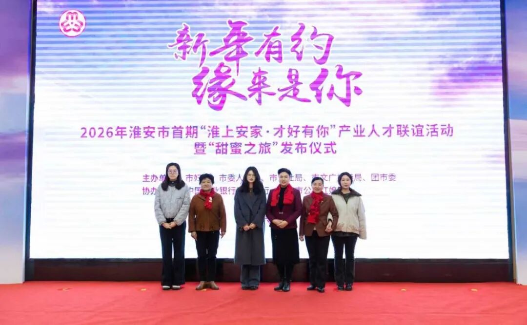 为贯彻习近平总书记关于积极培育新型婚育文化,加强对年轻人婚恋观、生育观、家庭观的引导的重要指示,落实全国妇联做强“幸福联线”婚恋服务,聚焦淮安“十五五”时期高质量跨越发展战略部署,助推人才留淮、安家兴业,2月8日,2026年淮安市首期“淮上安家·才好有你”产业发展人才联谊活动暨“甜蜜之旅”发布仪式成功举办。