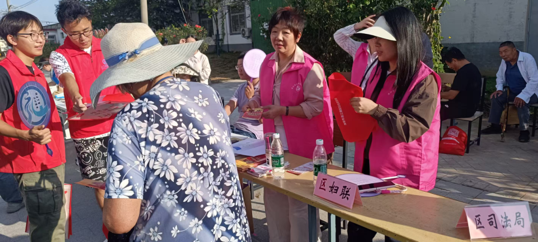 清江浦区妇联组织巾帼志愿者参加“丰收硕果满秋日 文明乡风润心田”“三下乡”文明实践集中活动,宣传妇女权益维护和女性心理健康知识。